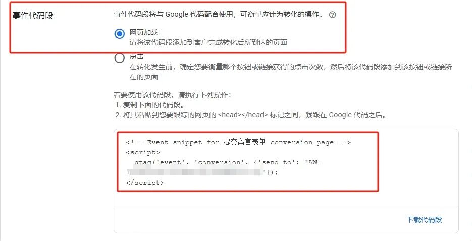 谷歌竞价转化追踪中“事件代码段-网页加载”设置详解