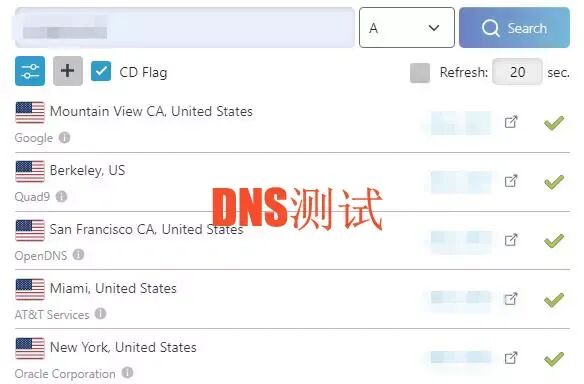 DNS服务器性能在线测试工具:DNS Checker